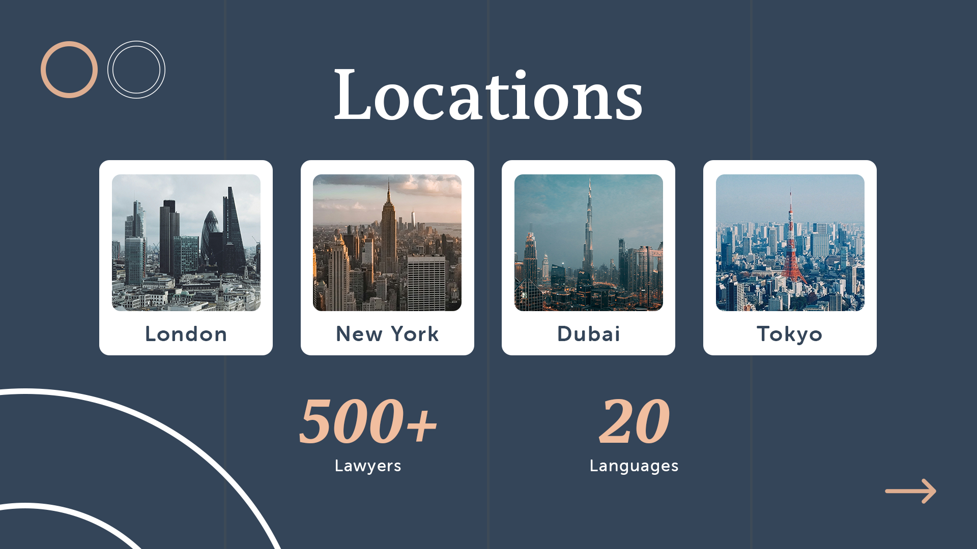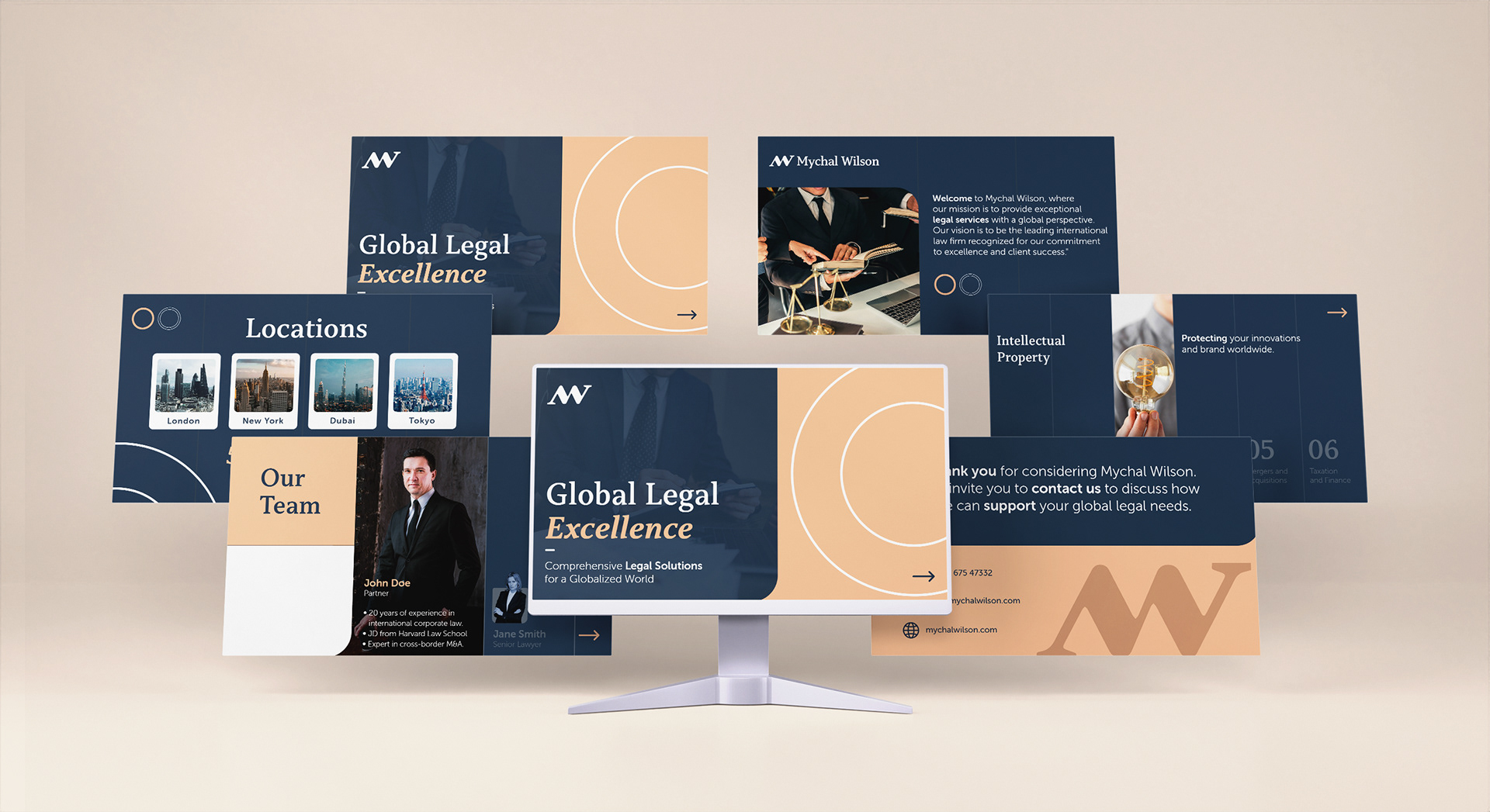 Embarking on a creative journey, I developed a comprehensive and visually compelling pitch deck to showcase an international law firm's global expertise, unique value propositions, and commitment to client success.